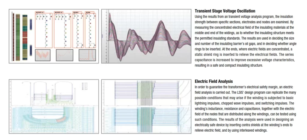- Transient voltage oscillation analysis verifies insulation margins at winding ends and middles.