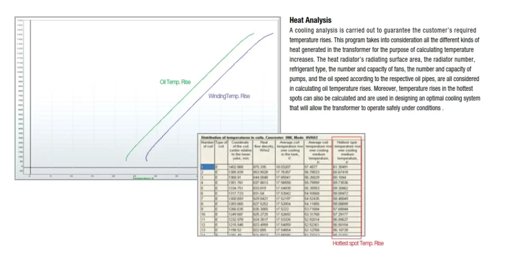- Programs calculate local hotspots, oil temperature rise, and winding temperature gradients.